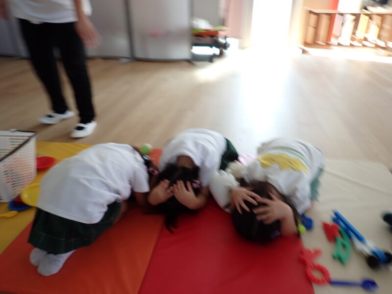 遊んでいると・・・ジリリリリリリ~と非常ベルが(≧Д≦) そして、「訓練地震 訓練地震~」と放送が流れそれを聞くと↓