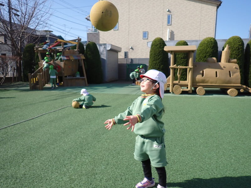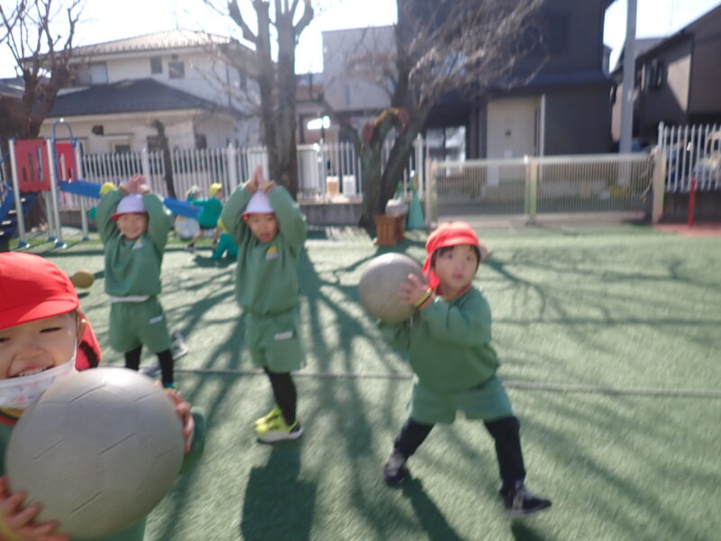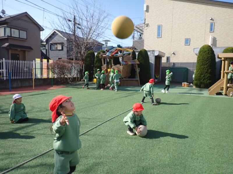 今日も、太陽の陽射しを浴びながら(雲一つない、いいお天気になりました☀️)、ボール運動を楽しみました!