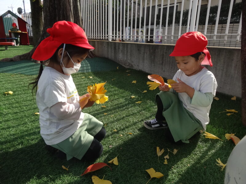 昨日に引き続き、銀杏の葉っぱや落ち葉でブーケ作りが大人気🍂