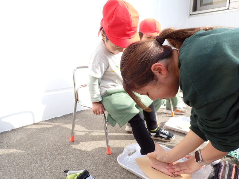 足の裏の絵の具はお友だちが一生懸命洗いましたが、お風呂でもしっかりと洗っていただけると嬉しいです💓