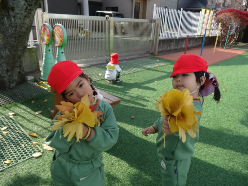 昨日に引き続き、銀杏の葉っぱや落ち葉でブーケ作りが大人気🍂