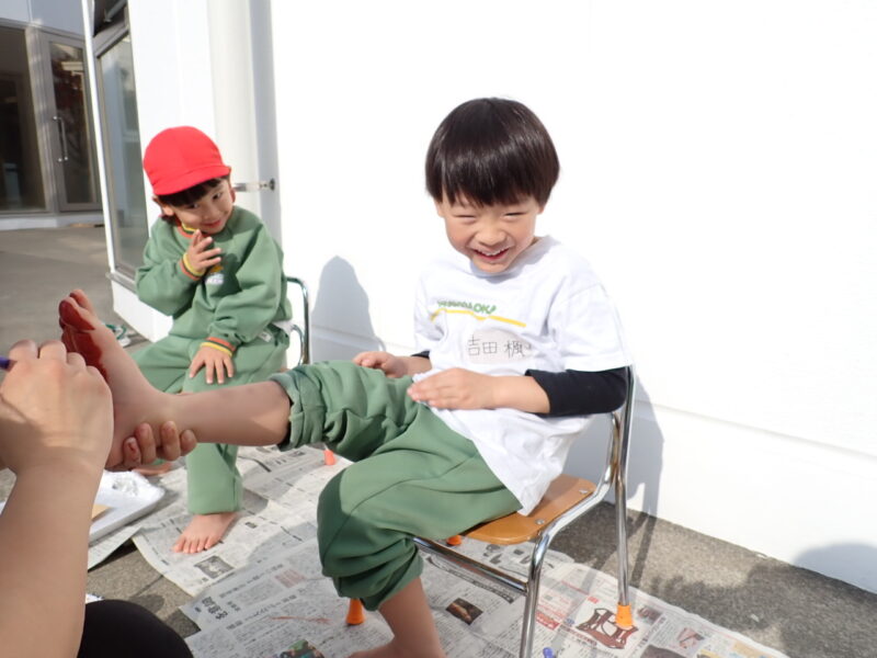足に筆で絵の具を塗り、「くすぐったーい!」と楽しんでいたおともだちも(*^^*)