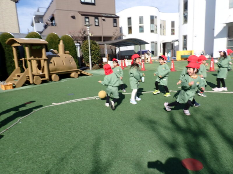 今日は、ルールよりも、「ボールを追いかける」「枠に関係なく逃げ回る」姿が多く見られました。繰り返しルールを確認しながら、取り組んでいきましょう!