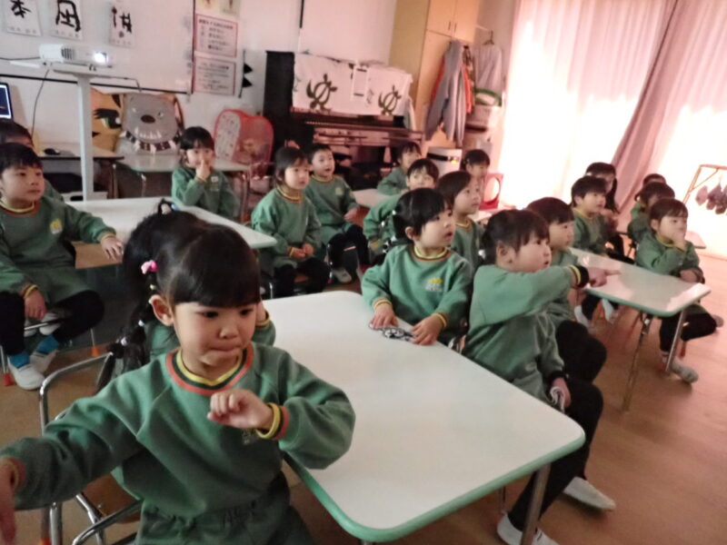 今日は、『体育あそび』『リハーサルの動画を鑑賞』『雪・外あそび』を楽しみました\(^_^)/
