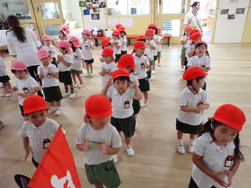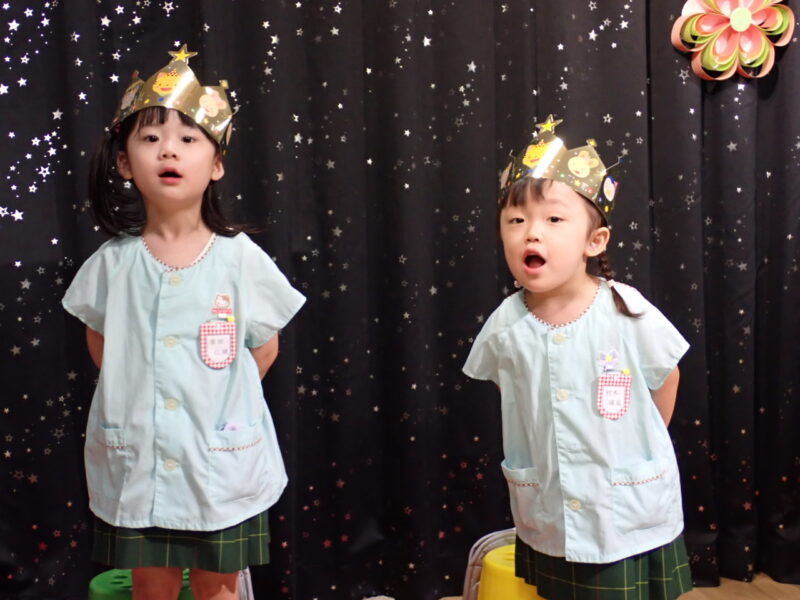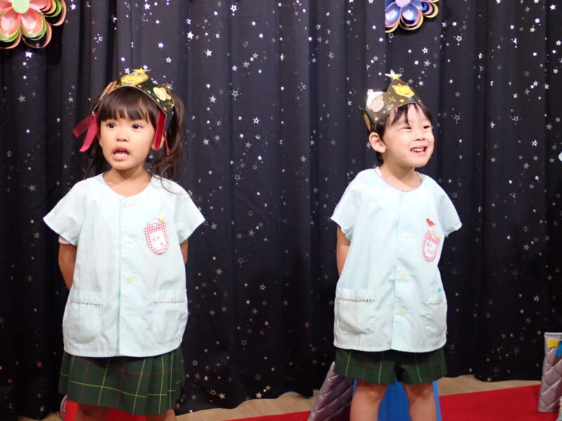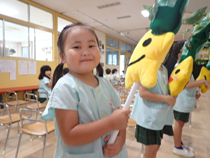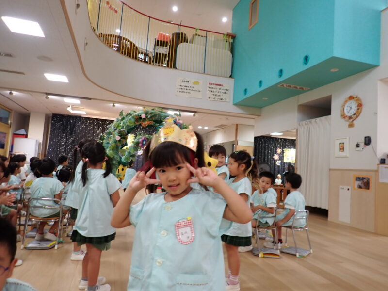 年長組さんと一緒のお誕生会で、言葉の代表の姿を見たり、アーチのお手伝い(アーチを持って長い距離を歩く)という経験をさせて頂いたり、「お祝いの気持ち」を一緒に伝えたり、新たな経験をさせていただきました!お誕生のお友だちだけでなく、お祝いするお友だちも言葉や拍手でお祝いする姿に成長を感じました!