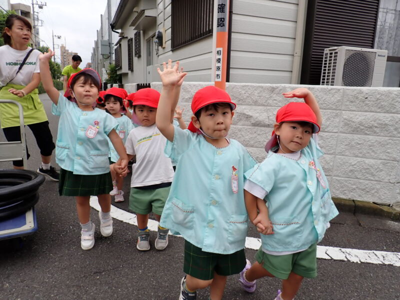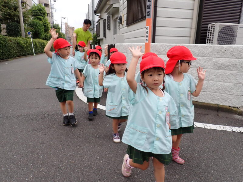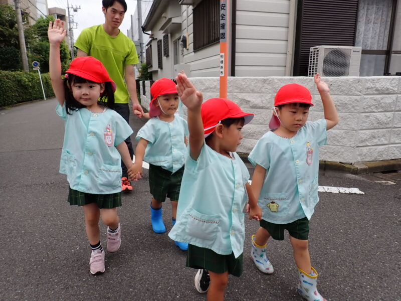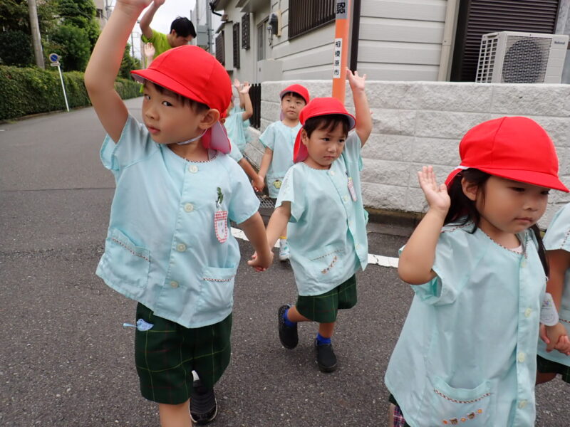 帰りは、苺組さんで手を繋ぎ、交通ルールを思い出しながら帰ってきました。👍